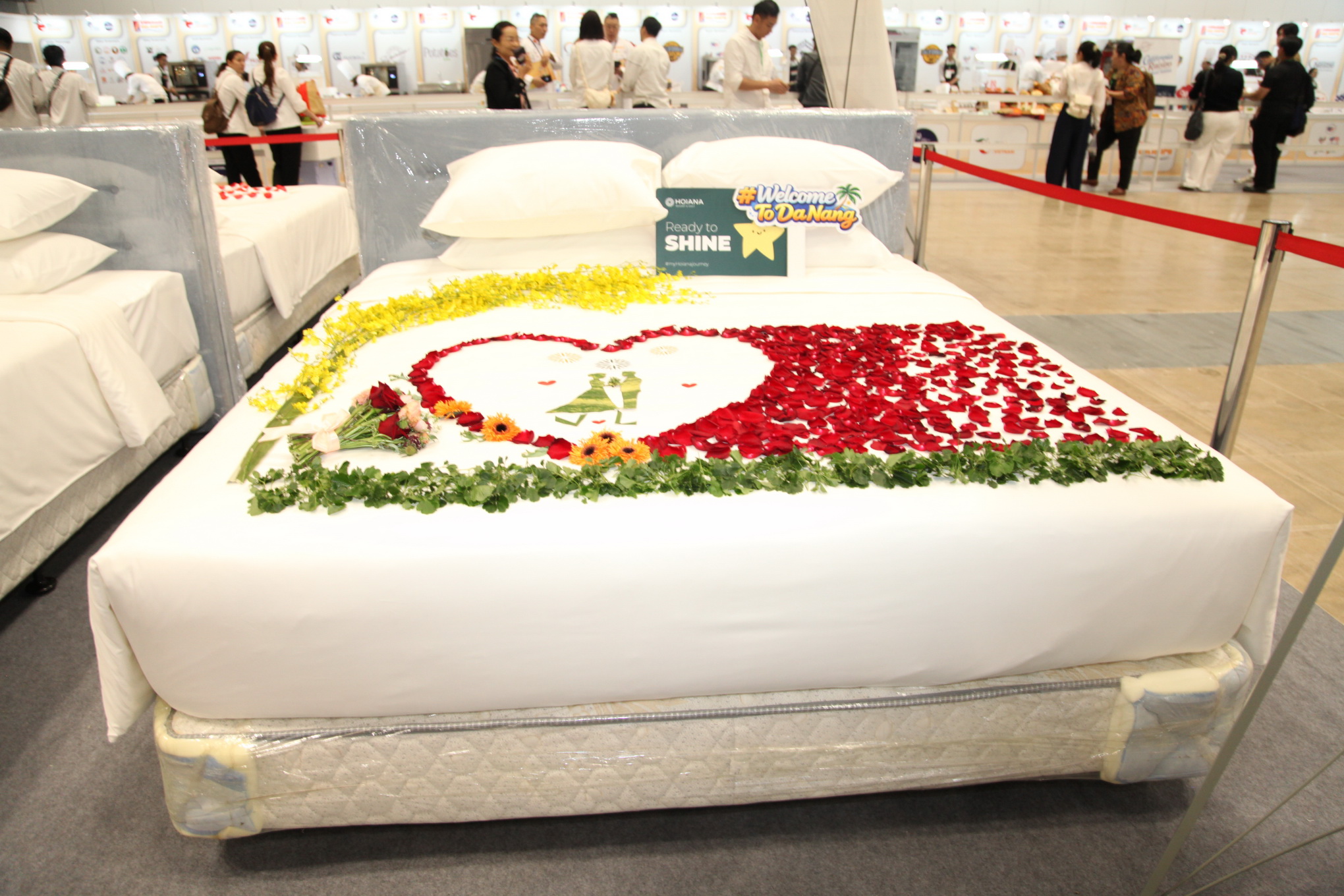 Song song đó, phần thi trang trí buồng phòng cũng thu hút sự chú ý với những ý tưởng sáng tạo từ các vật dụng quen thuộc như ga giường, khăn tắm, gối… Những hình ảnh như thiên nga, hoa sen, trái tim được tạo hình công phu, góp phần mang lại không gian lưu trú sinh động và giàu cảm xúc.