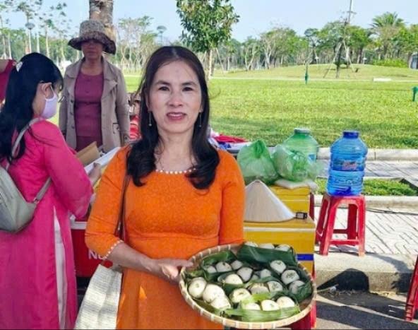 Chị Trang với sản phẩm bánh giầy. Ảnh: V.P