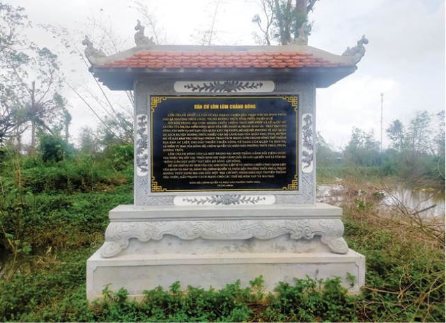 Bia căn cứ lõm Lùm Chánh Đông. Ảnh: dulichhuongthuy.com