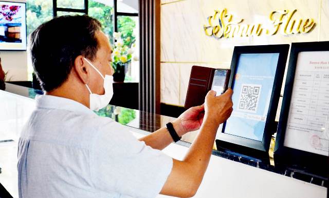 Kiểm tra quét mã QR tại một khách sạn ở Huế
