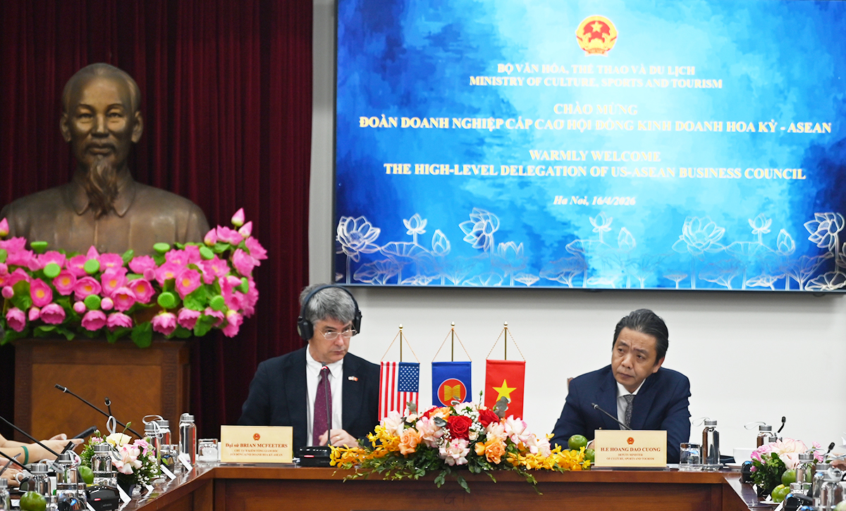 Phát biểu tại buổi làm việc, Ngài Brian McFeeters, Đại sứ, Chủ tịch kiêm Tổng Giám đốc Hội đồng Kinh doanh Hoa Kỳ - ASEAN (US-ABC), bày tỏ cảm ơn những chia sẻ của Thứ trưởng Hoàng Đạo Cương về triển vọng hợp tác giữa Việt Nam và Hoa Kỳ trong các lĩnh vực văn hóa, thể thao và du lịch.
