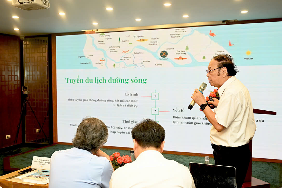 GS.TS.NGND. Nguyễn Văn Đính trình bày tham luận về Du lịch đường sông và một số vấn đề về định hướng phát triển du lịch đường sông Việt Nam. Ảnh: TITC