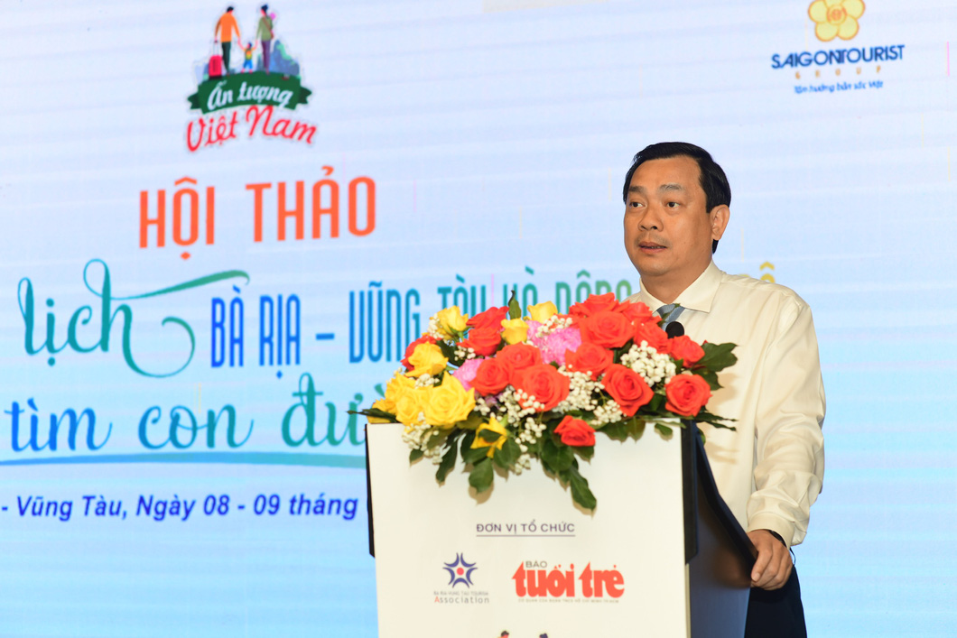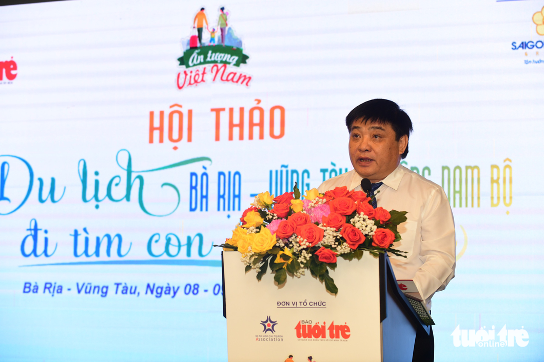 Chủ tịch Hiệp hội Du lịch tỉnh Bà Rịa - Vũng Tàu Phạm Ngọc Hải phát biểu tại hội thảo (Ảnh: Báo Tuổi Trẻ)