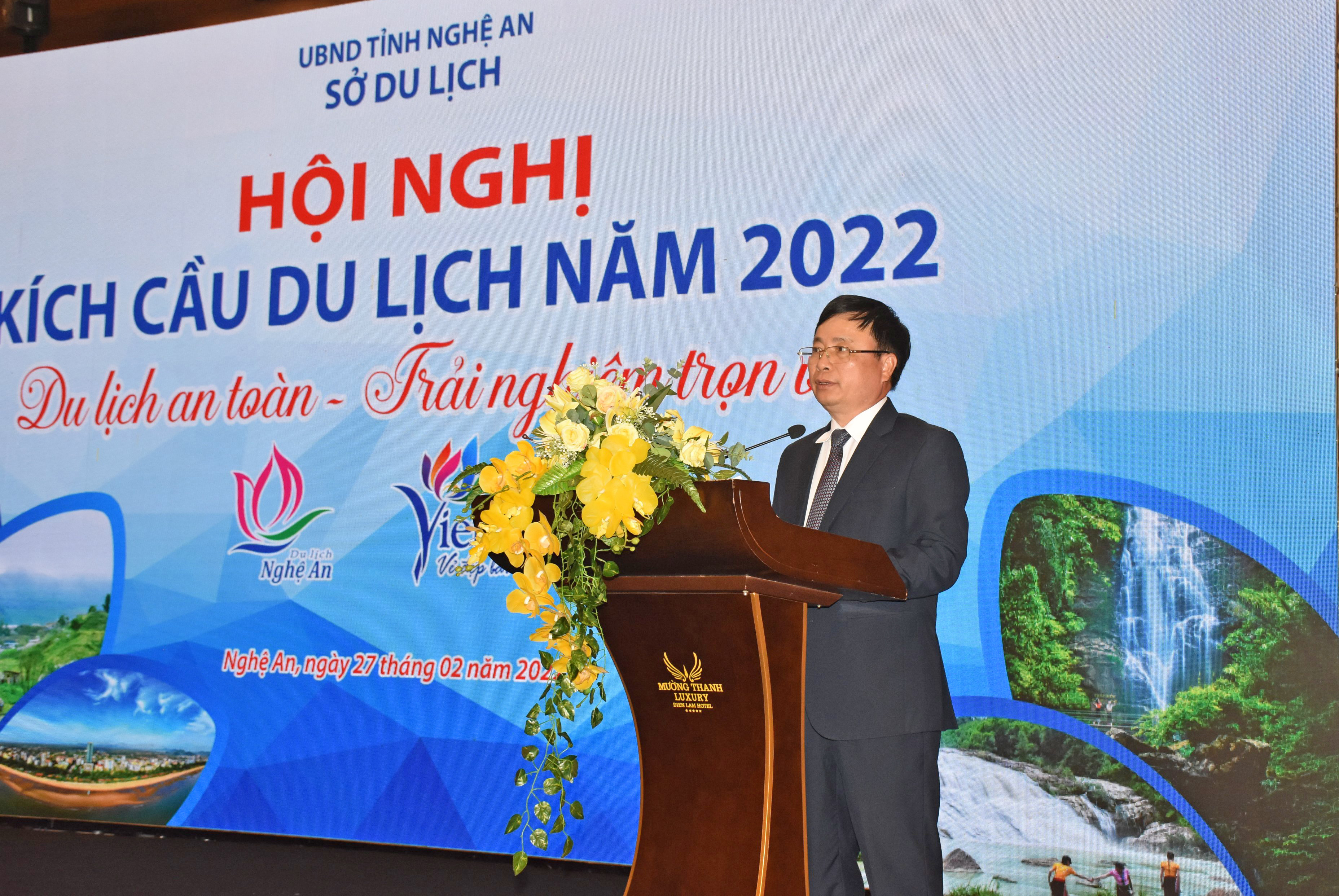 Phát biểu chào mừng hội nghị, Phó Chủ tịch UBND tỉnh Nghệ An Bùi Đình Long cho biết, hưởng ứng chương trình phát động du lịch nội địa, hướng dẫn thí điểm đón khách quốc tế giai đoạn 2 của Bộ Văn hoá, Thể thao và Du lịch, chủ trương mở cửa lại hoạt động du lịch từ ngày 15/3/2022 của Chính phủ, Nghệ An xác định đây là thời điểm vàng để ngành du lịch Nghệ An mở cửa lại và đẩy mạnh các hoạt động quảng bá, xúc tiến thu hút du khách.
