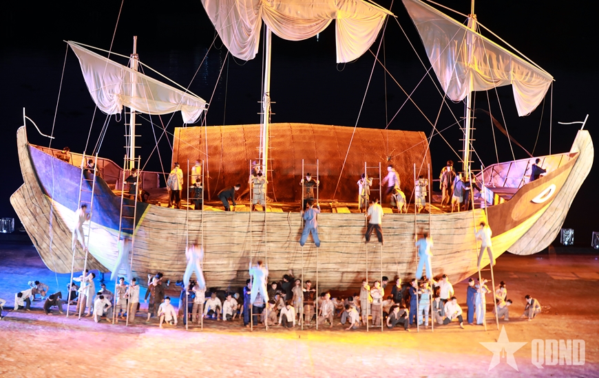 Một cảnh đặc sắc trong chương trình nghệ thuật chủ đề “Chuyến tàu huyền thoại” khai mạc Lễ hội Sông nước TP. Hồ Chí Minh năm 2024.