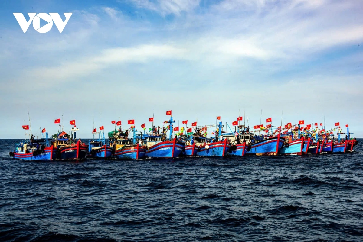 Tàu thuyền của làng Lò tham gia lễ hội cầu ngư trên biển