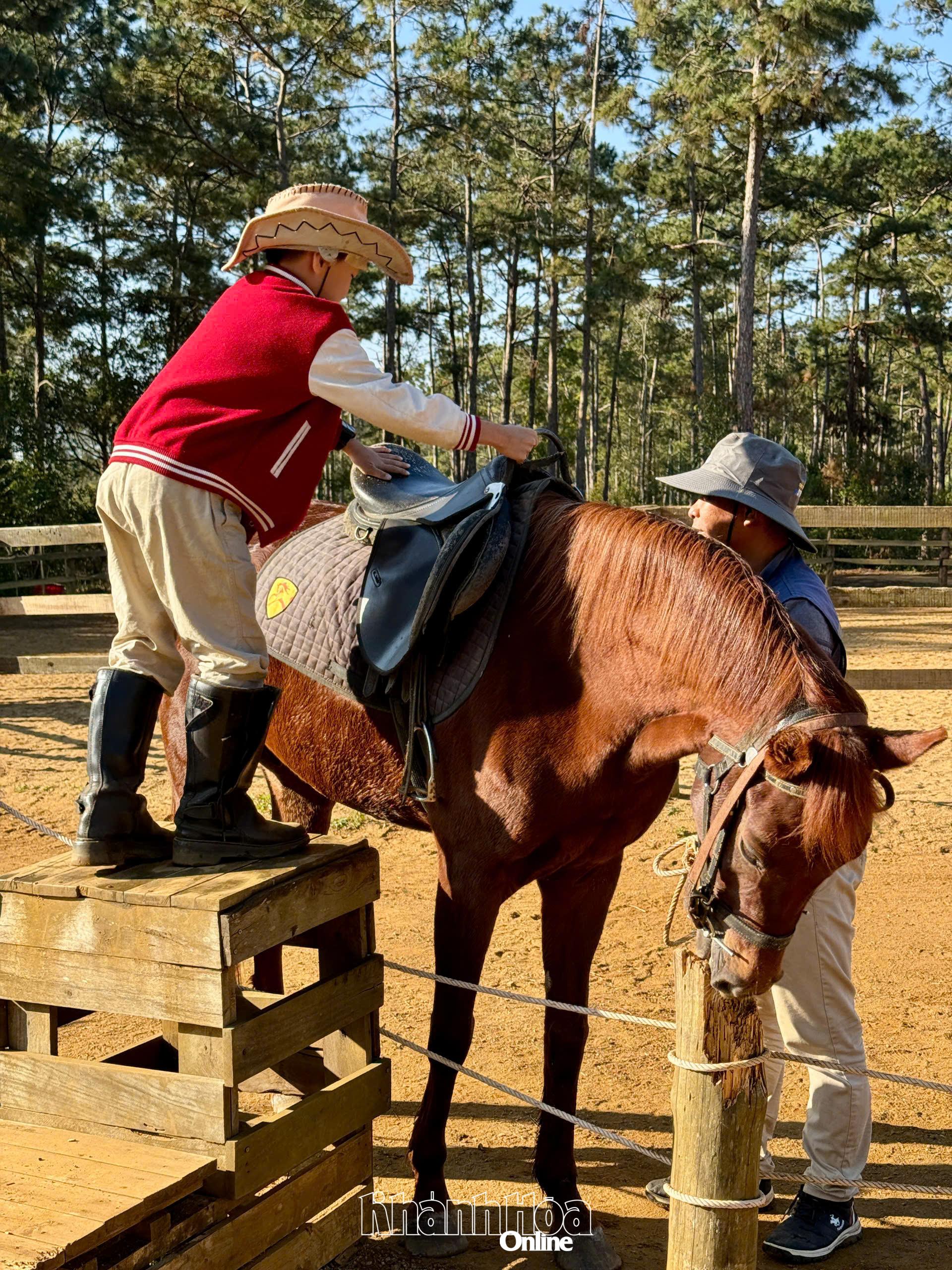 Khác với một số mô hình cưỡi ngựa mang tính “trình diễn” ở nhiều địa phương, tại đây, du khách được hướng dẫn bài bản từ những thao tác cơ bản như cách tiếp cận ngựa, giữ thăng bằng, đến điều khiển nhịp đi. Ngựa được nhập từ châu Âu, vóc dáng cao lớn nhưng hiền, đã qua quá trình thuần hóa kỹ lưỡng. Với trẻ nhỏ, ngựa được lựa chọn phù hợp thể trạng, luôn có người dắt kèm, đảm bảo an toàn. Nhiều phụ huynh chia sẻ, đây là dịp hiếm hoi để con trẻ tiếp xúc với động vật một cách tự nhiên.