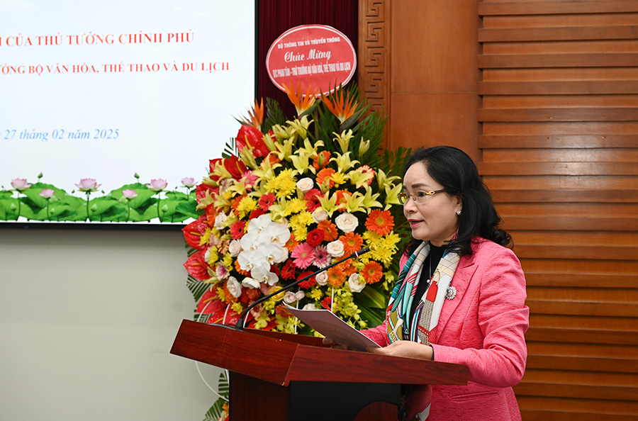 Thứ trưởng Bộ VHTTDL Trịnh Thị Thủy công bố Quyết định của Thủ tướng tại buổi lễ (Ảnh: TITC)