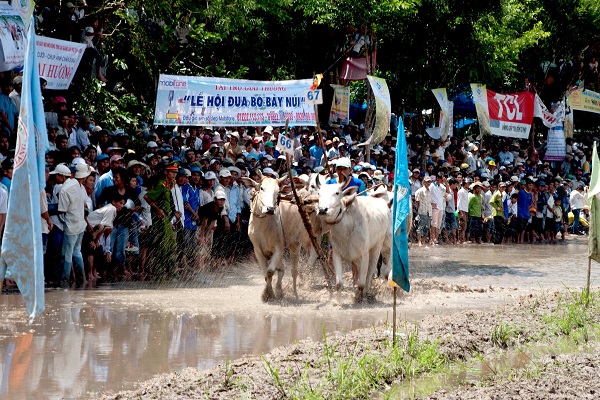 8 đôi bò đua tốt nhất trên địa bàn huyện đã được chọn để thi đấu trong “Hội Đua bò Bảy núi” dịp này. Du khách sẽ có những giây phút nghẹt thở dõi theo đường chạy của từng cặp bò. Đây là hình thức đua bò biểu diễn, diễn ra thường niên và mang tính đặc trưng của vùng bảy núi. Hàng năm sự kiện này thu hút rất đông khách du lịch tham gia.