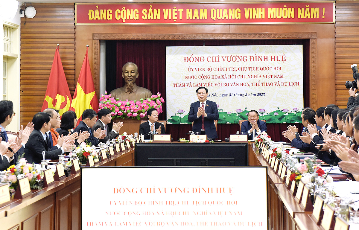 Chủ tịch Quốc hội Vương Đình Huệ thăm và làm việc với Bộ Văn hóa, Thể thao và Du lịch (Ảnh: TITC)