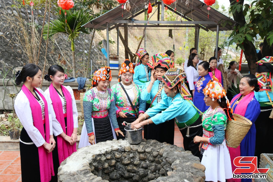 Nhân dân lấy nước cầu may tại giếng Ngọc, Đền Nàng Han, xã Quỳnh Nhai. Ảnh: Lò Linh