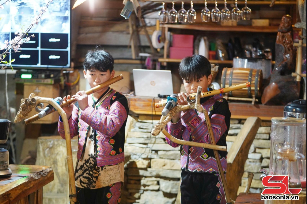 Biểu diễn sáo Mông tại A Chu Homestay, xã Vân Hồ.