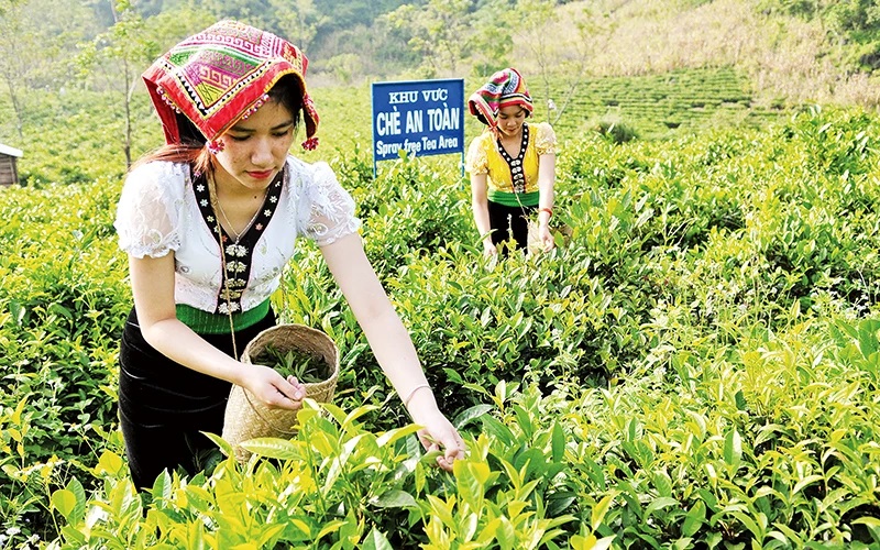 Thu hoạch chè tại huyện Mộc Châu (Sơn La).