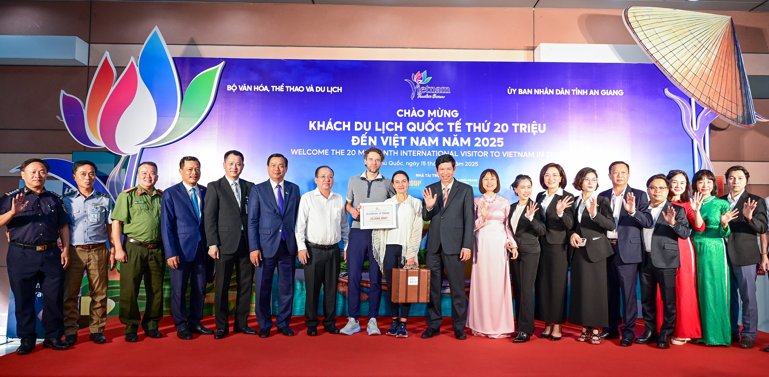 Phát biểu tại sự kiện, Thứ trưởng Bộ Văn hóa, Thể thao và Du lịch Hồ An Phong nhấn mạnh, việc đón vị khách du lịch quốc tế thứ 20 triệu là sự kiện có ý nghĩa đặc biệt quan trọng, đánh dấu cột mốc rực rỡ trong chặng đường 65 năm hình thành và phát triển của ngành Du lịch Việt Nam. Đây là minh chứng sinh động cho những nỗ lực bền bỉ, không ngừng của toàn ngành trong suốt thời gian qua, gắn liền với sự phát triển chung của đất nước.