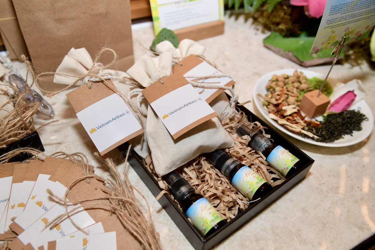 Workshop làm túi thơm thảo mộc tạo điểm nhấn thú vị tại sự kiện, thu hút các đại biểu và khách mời tham gia.