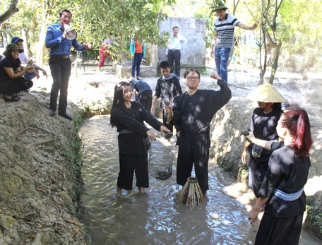 Dịch vụ tát mương bắt cá ở cù lao là một điểm rất hấp dẫn du khách trong và ngoài tỉnh.