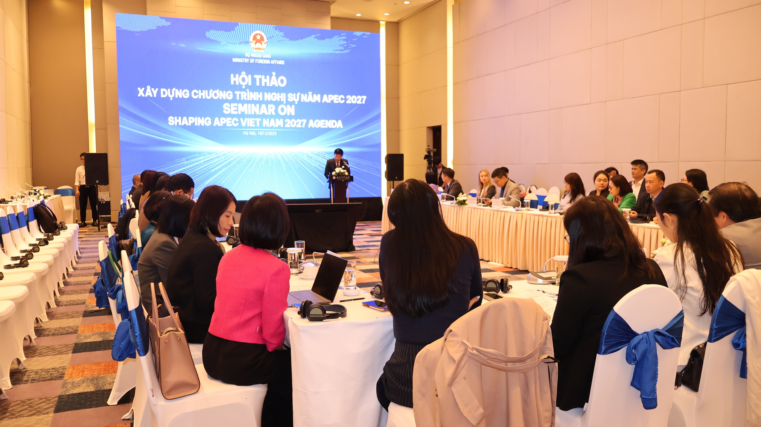Hội thảo tập trung trao đổi về những kết quả nổi bật của APEC thời gian qua; các xu hướng, cơ hội và thách thức trong giai đoạn tới; cũng như các nhóm chủ đề và định hướng chính sách làm cơ sở xây dựng Chương trình nghị sự APEC 2027.