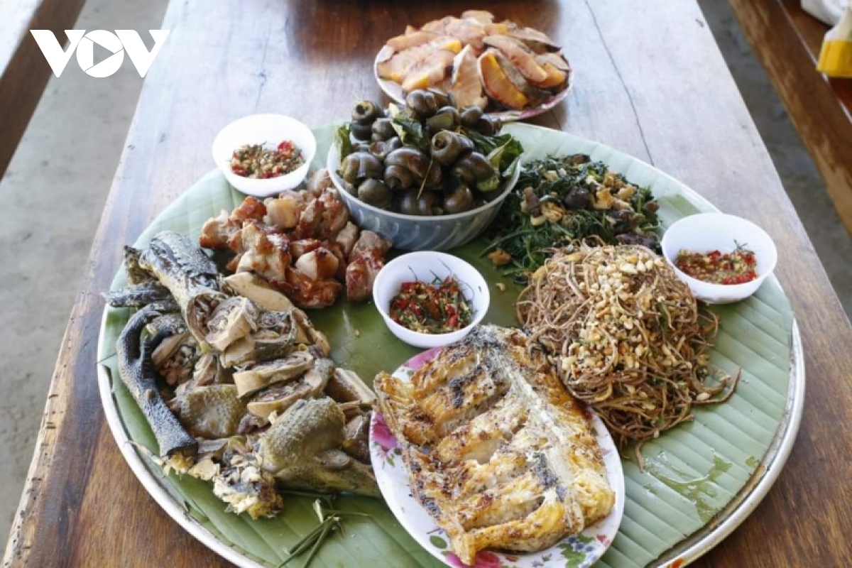 Đồng bào dân tộc Tày ở Văn Yên chế biến món cơm lam, cá suối nướng